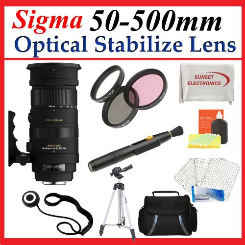 Are you looking for Sigma 50-500mm f/4.5-6.3 APO DG OS HSM SLD Ultra Telephoto Zoom Lens for Nikon Digital DSLR Camera + 3PC Filter Kit + Lens Pen + Case + Tripod and much more!!! at the Best Price? We Can Help You !!